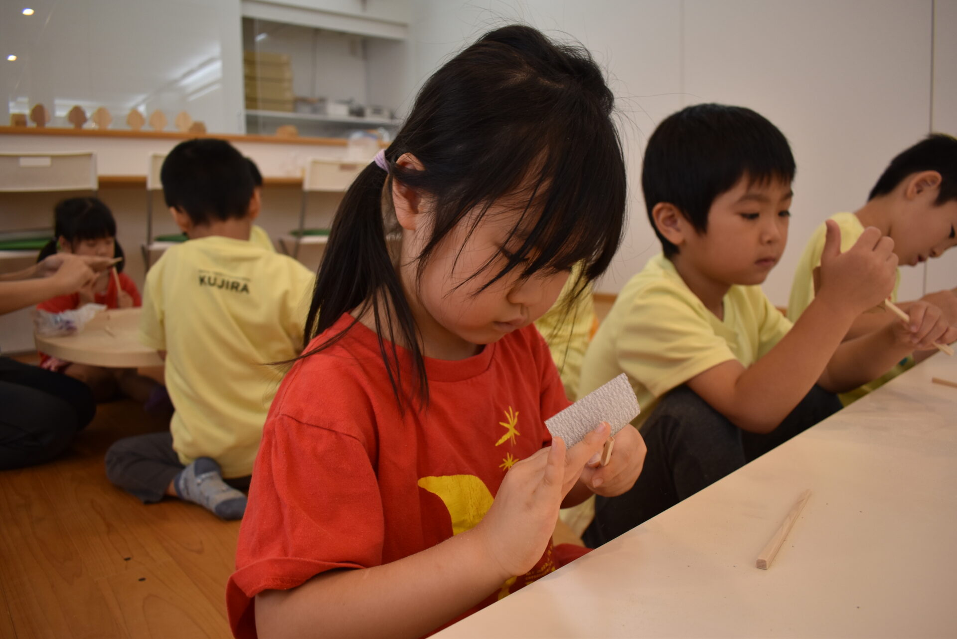 よく見てみると気付かないうちに木の粉がいっぱい!これは、頑張って木を削った証です✨