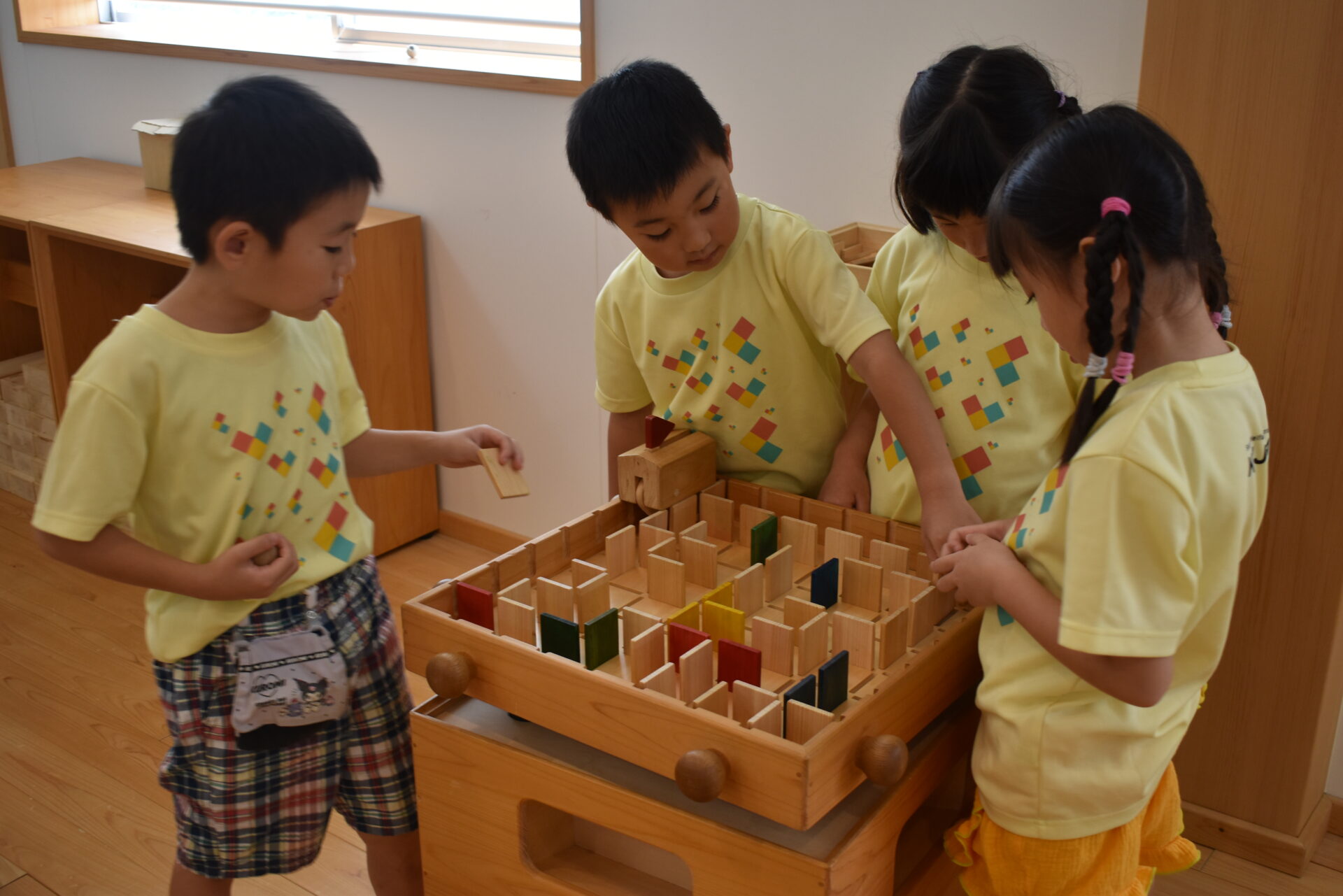 昼食後は、様々な木の玩具に触れて遊びました。