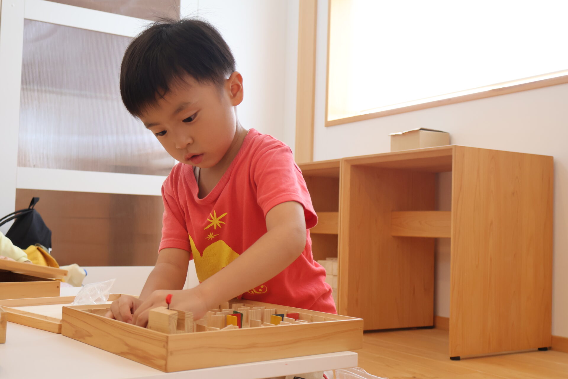 「ここに置いたら、入るとこなくなっちゃうな~」「じゃあ、どこにおく??」と相談しながら、お家作りに挑戦していましたよ♪