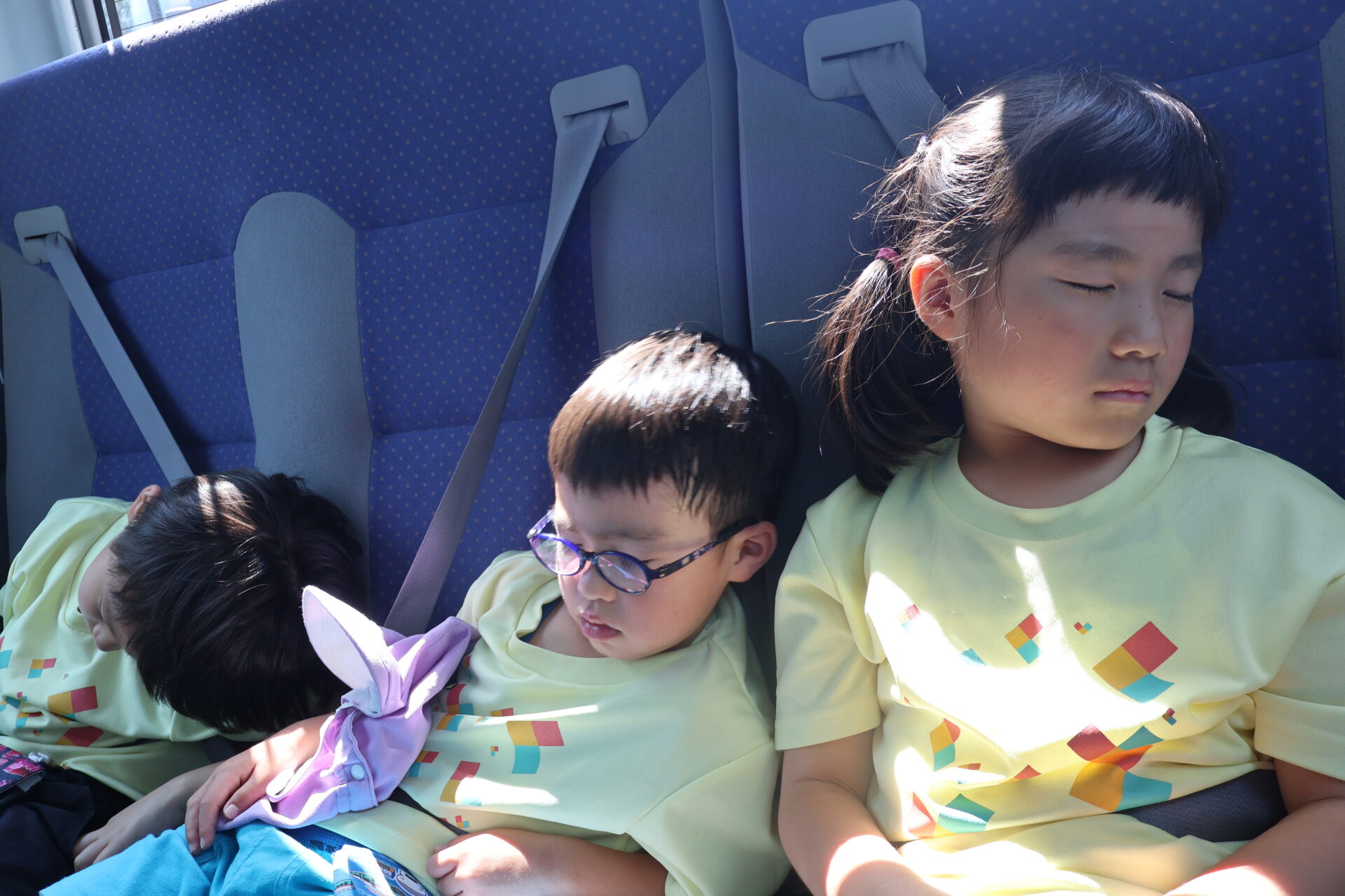 たくさん木の玩具に触れて遊び疲れて、帰りのバスでは心地よく揺られながらぐっすりでした💤
