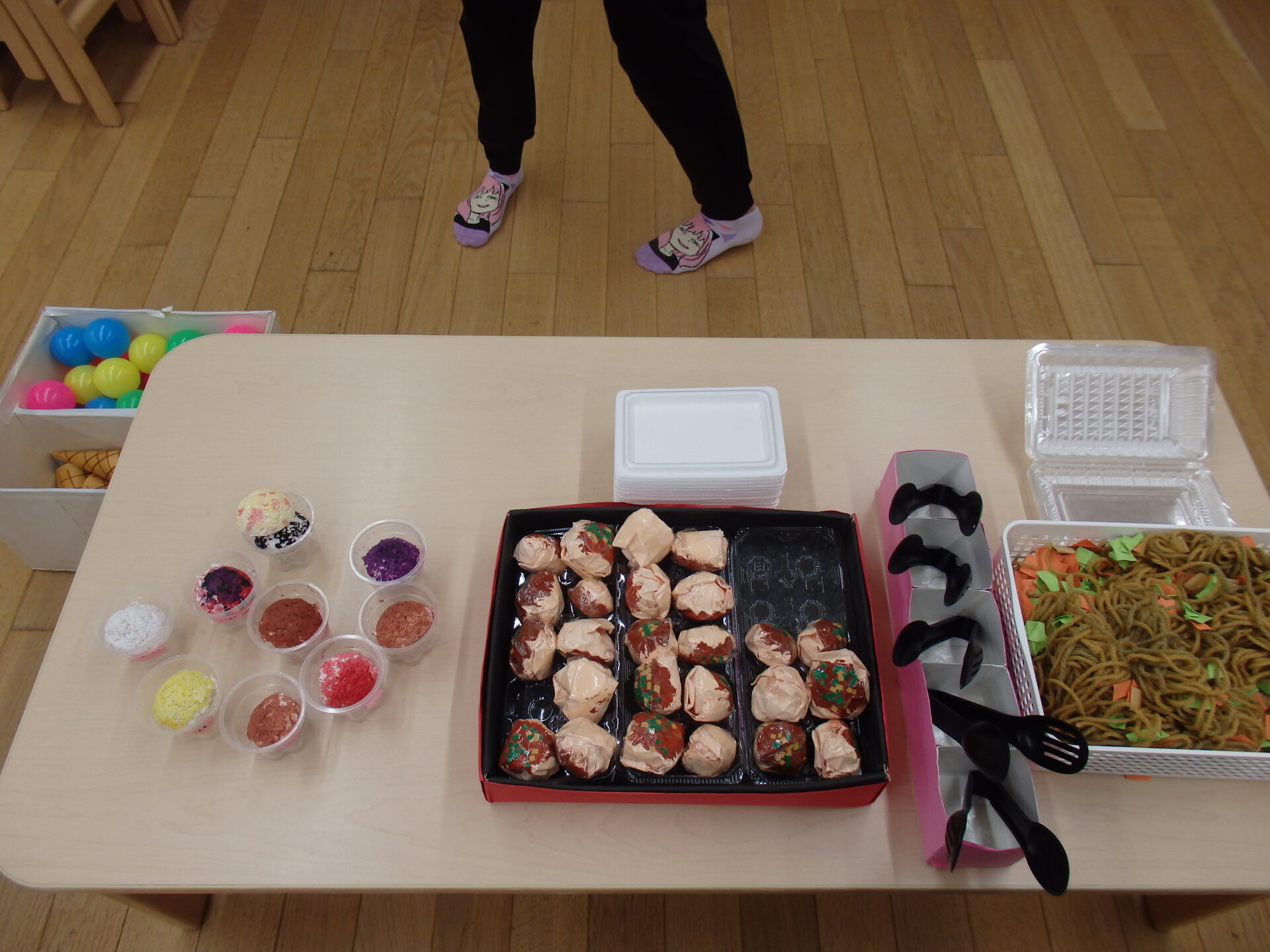 買った商品は、テーブルの上に並べてみんなで食べました😊